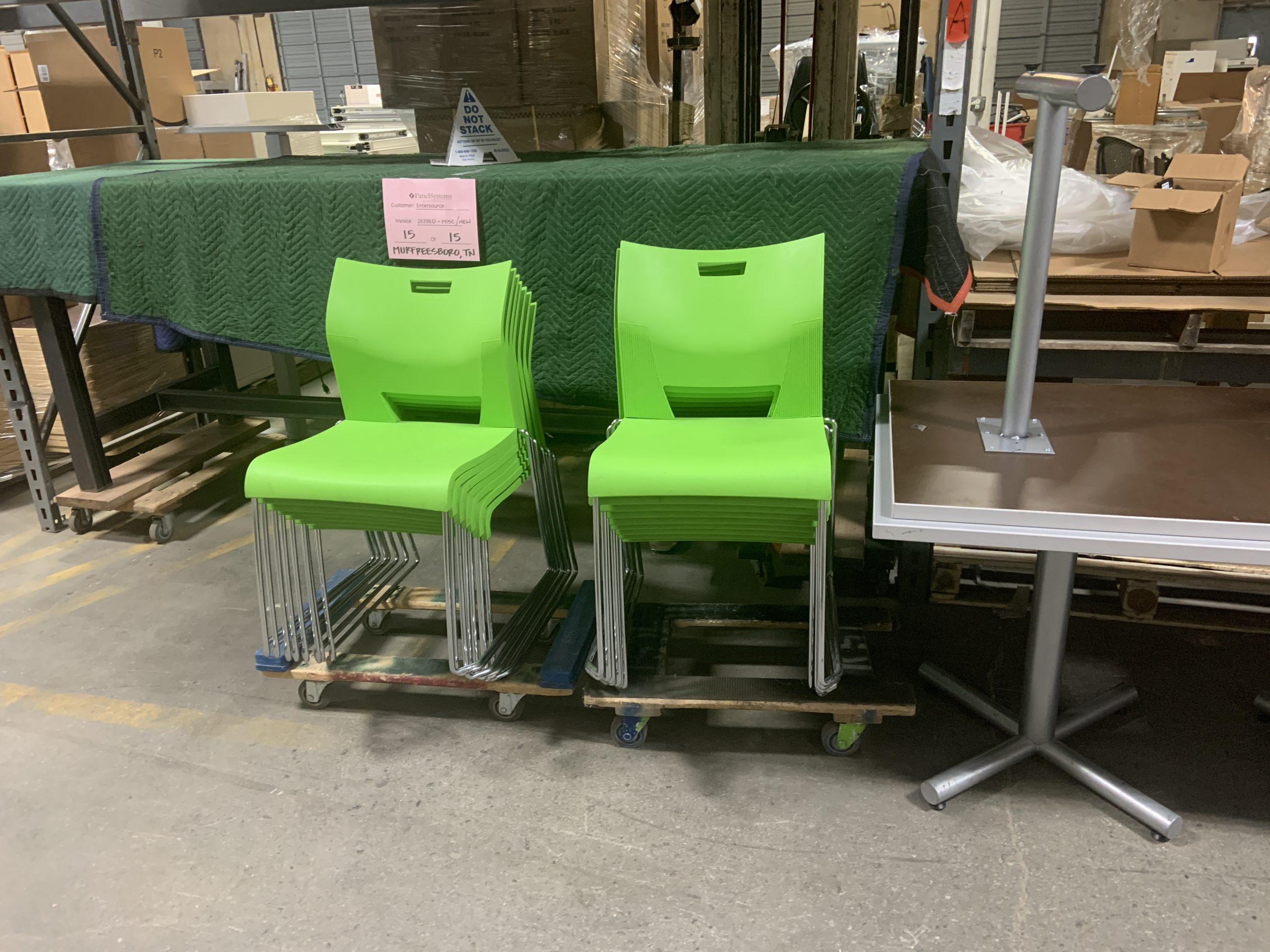 - Global Duet Chairs: Green cactus color, stackable for easy storage.