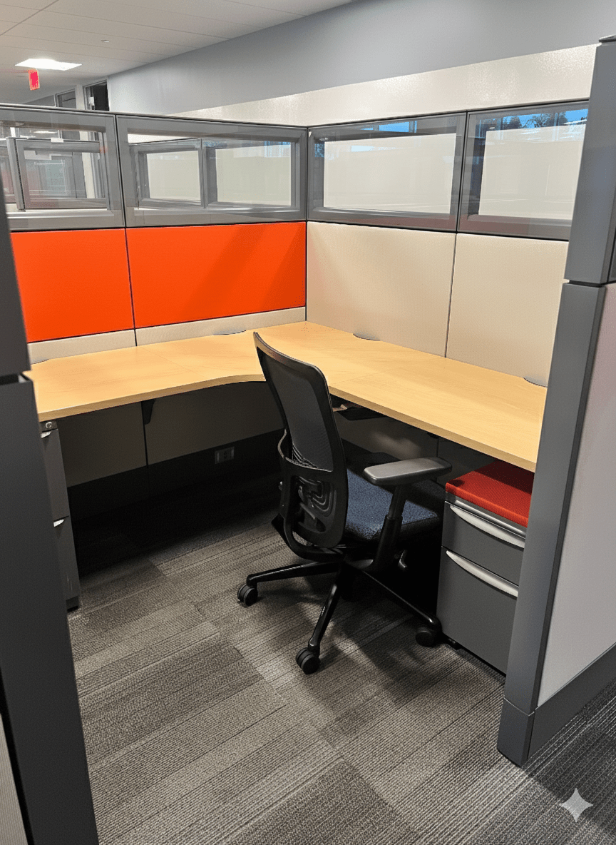 Upgrade your workspace with these premium Haworth Premise 6×6 cubicles, designed for flexibility, style, and comfort. Standing 64” tall with 16” glass stackers, these workstations offer privacy while maintaining natural light flow and an open feel.